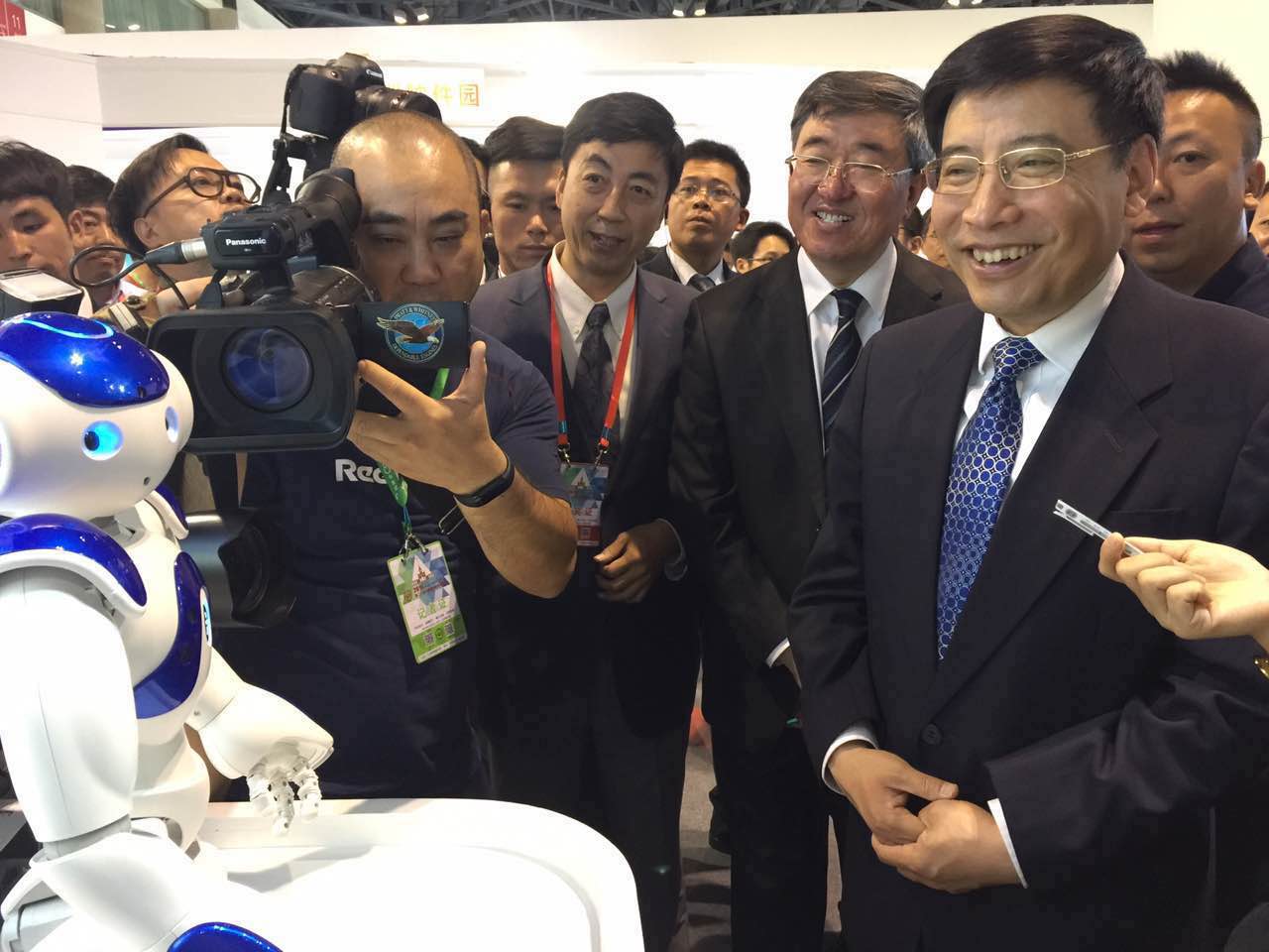 灵云科技5月30日消息:26日,工业和信息化部主办的“2016第二十届中国国际软件博览会”在北京展览馆举办。工信部部长苗圩到访捷通华声,与灵云智能机器人进行了亲密对话,灵云机器人不仅展现了“能说会听”的魅力,还展现出“能思考、会判断”的智慧,得到了苗部长及广大与会人员的高度赞赏。